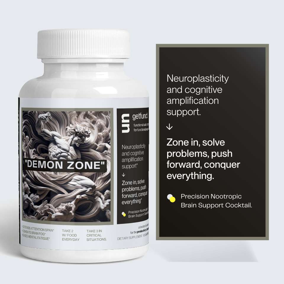 This is flow-state on steroids, this is the Demon Zone. A truck load of (highly specific acetylcholine producing) substances that increase neurotransmitter production to keep that wonderful machine in your skull tickin' at peak precision. You'll notice clearer, sharper thoughts and find yourself way less likely to get distracted by hours of cat videos.
