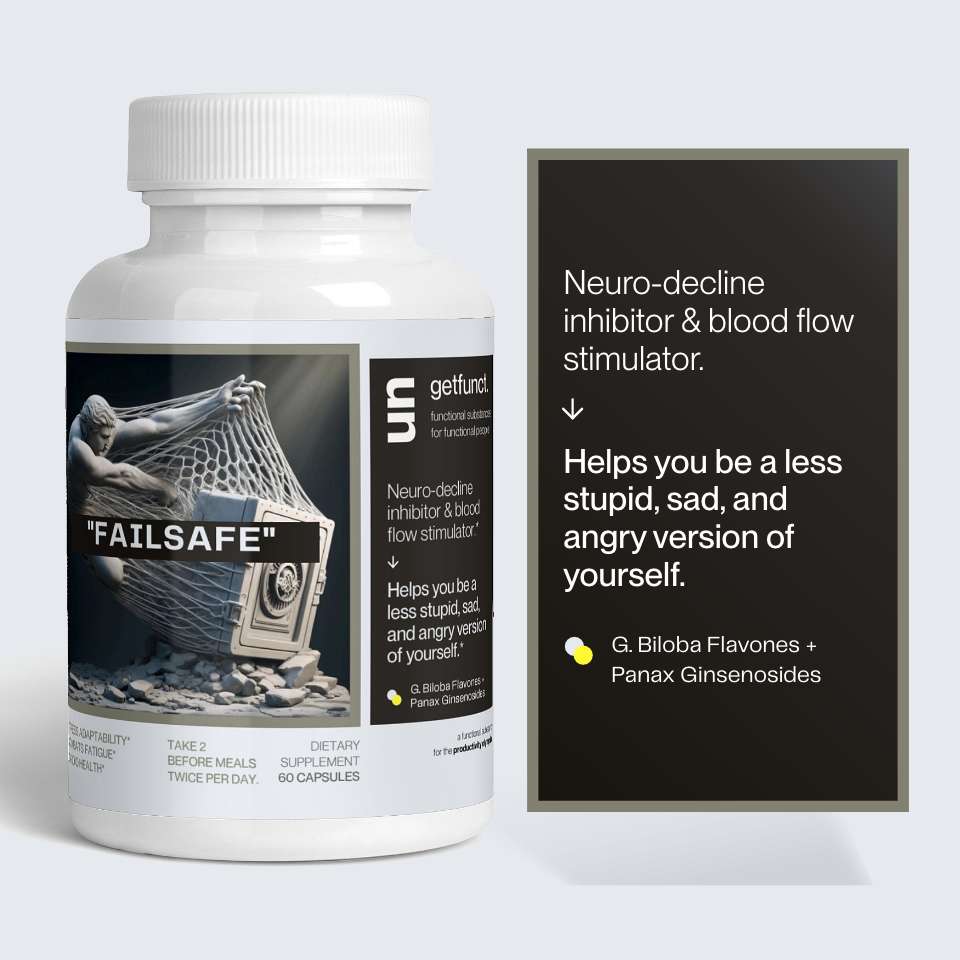 Gingko is proven to be an extremely effective neuro-protectant, its an insurance policy that keeps you from being the weird depressed uncle that speaks to walls. Super well researched with an impressive safety profile, it should really be in everybody on a regular basis.